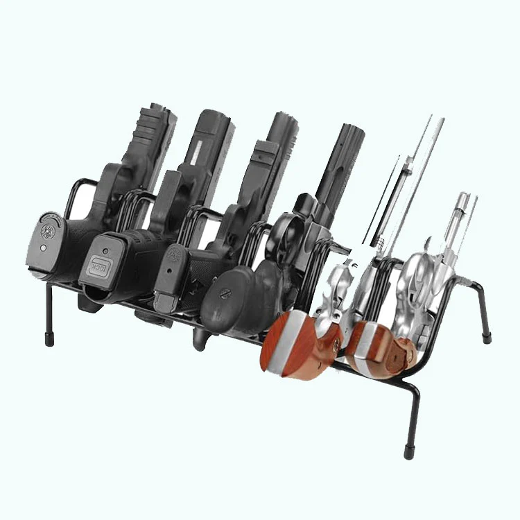 Hittar du inte ett passande förvaringsställ för dina små skjutvapen? Tänk på pistolstället för golvstativ inomhus designat och tillverkat av Kecheng Metal. Vi är en professionell leverantör som erbjuder skräddarsydd design och fabriksdirekta priser. Ställets yta är specialbehandlad för att motstå repor, och de fyra stödfötterna i botten är försedda med skyddsöverdrag, vilket gör att ställningen är mindre benägen att glida och ger större stabilitet och säkerhet.