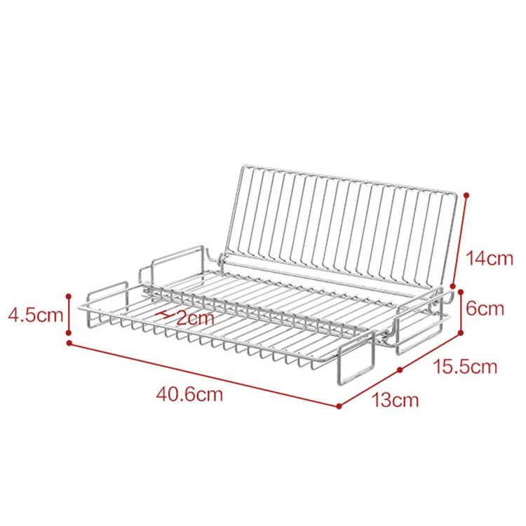 Den totala storleken är 40,6 cm, huvudkroppens höjd är 6 cm, den vertikala kanthöjden är 14 cm, sidoförlängningens bredd är 15,5 cm, dräneringsgapet är 2 cm. Den här designen är lämplig för de flesta hushållsvaskar med enkel-/dubbelspår och säkerställer att vattnet rinner igenom snabbt, vilket undviker vattenansamling.