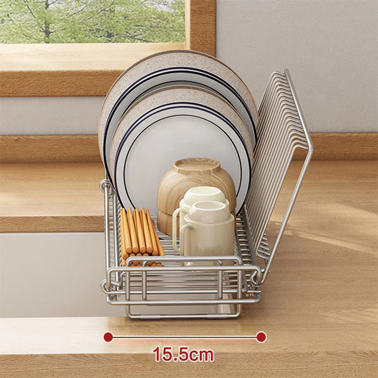 2. Semi-infälld diskbänksform (Model B): En del av ramen är inbäddad i diskhon, lämplig för situationer med en smal diskho. Den kan både förvara servis och låta vatten rinna direkt in i diskhon, vilket håller bänkskivan torr.